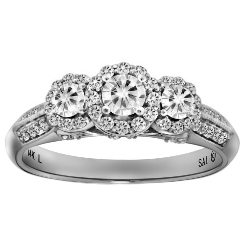 14k White Gold 3/4 Cttw Diamond 3-Stone Past Present Future Ring, Size 7 Feature