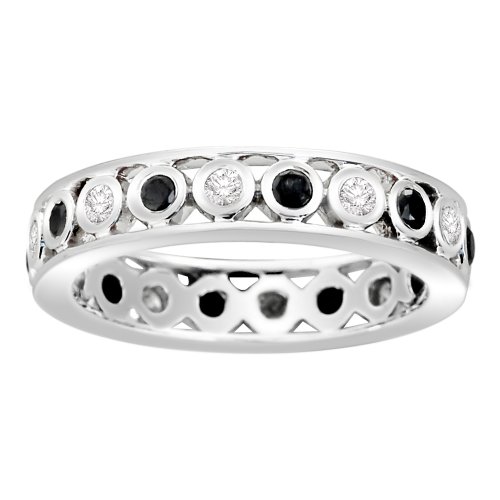 14k White Gold Black and White Diamond Bezel Set Eternity Ring (2/3 cttw, H-I Color, I1-I2 Clarity), Size 7 Feature