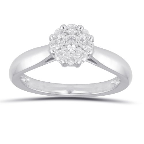 10k White Gold Round 9 Stone Cluster Diamond Engagement Ring (1/2 cttw I-J Color, I2 Clarity) Size 7 Feature
