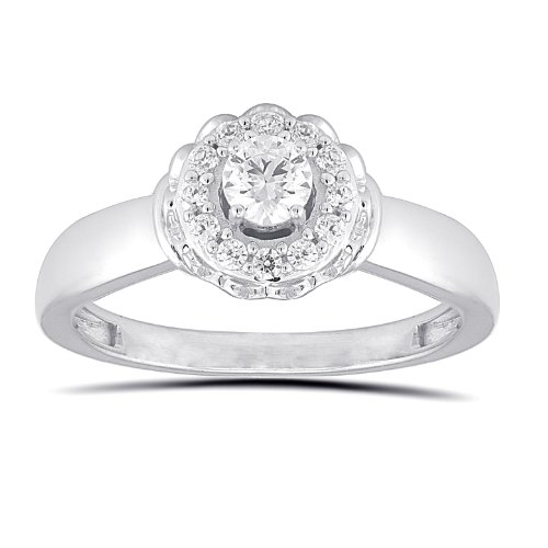 10k White Gold Round Halo Diamond Engagement Ring (0.50 cttw I-J Color, I2 Clarity) Size 6 Feature
