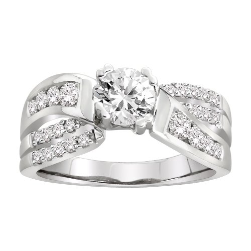 IGI Certified 14k White Gold 0.90 ct Round-Cut Center Diamond By-Pass Engagement Ring (1.45 cttw, H-I Color, I1-I2 Clarity), Size Feature