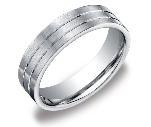Men's 14k White Gold 6mm Satin Finish Comfort Fit Plain Wedding Band with Polished Detail, Size 9 Feature