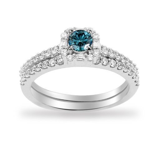14k White Gold Blue Diamond Center with Diamond Bridal Ring Set (3/4 cttw I-J Color, I1-I2 Clarity), Size 6 Feature