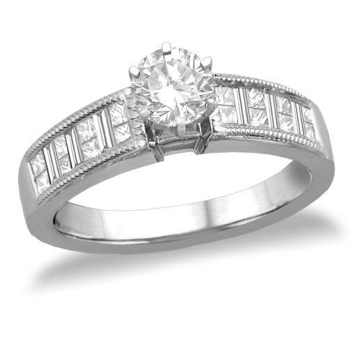 14k White Gold Round Diamond Engagement Ring (1/2 ct Center 1.04 cttw, G-H Color, SI2-I1 Clarity), Size 7 Feature