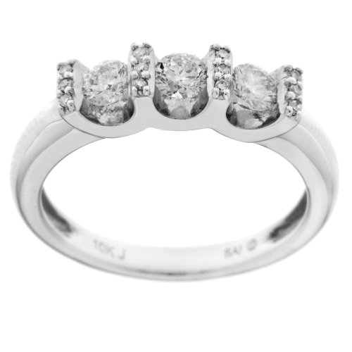 10k White Gold 3-Stone Diamond Ring (1/2 cttw, I-J Color, I2-I3 Clarity), Size 8 Feature