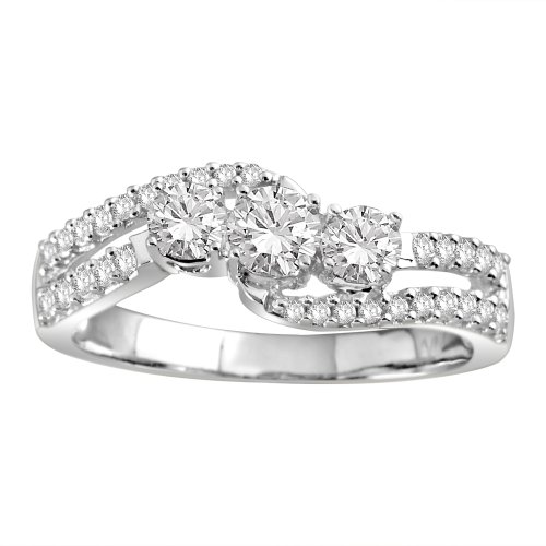 14k White Gold Three Stone Round Diamond Bridal Ring (0.75 cttw, H-I Color, I1-I2 Clarity), Size 8 Feature