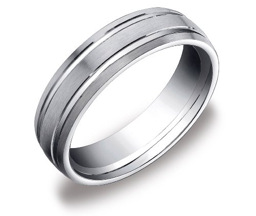 Men's 14k White Gold 6mm Oval Comfort Fit Plain Wedding Band with Polished Twin Concave Center Cuts, Size 10 Feature