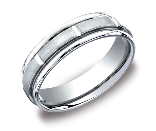 Men's Platinum 6mm Comfort Fit Plain Wedding Band with High Polished Round Edges and Vertical Cuts, Size 9 Feature