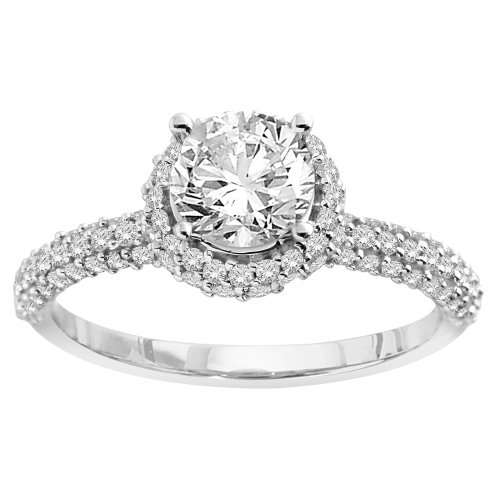 IGI Certified 14k White Gold .90ct Round-Cut Center Diamond Halo Bridal Ring (1.60 cttw, H-I Color, I1 Clarity), Size 7 Feature
