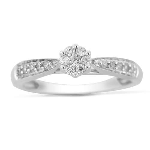 Made in India The total diamond carat weight listed is approximate. Variances may be up to .05 carats. Round shape round cluster diamond promise ring