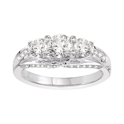 14k White Gold .60 cttw Round Center Diamond Three Stone Engagement Ring (1.50 cttw, H-I Color, I1-I2 Clarity), Size 8 Feature