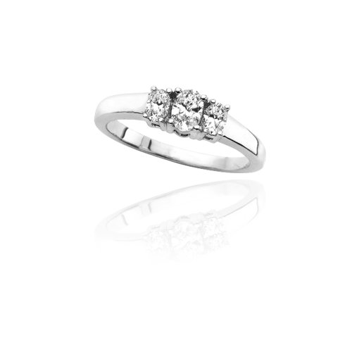 14k White Gold Oval Diamond 3-Stone Ring (1 cttw Center 2 cttw, I-J Color, I1 Clarity), Size 5 Feature