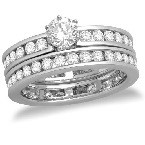 14k White Gold Round Diamond Bridal Ring Set with Channel-Set Round Diamond (1/2 ct Center 2.27 cttw, G-H Color, I1 Clarity), Feature