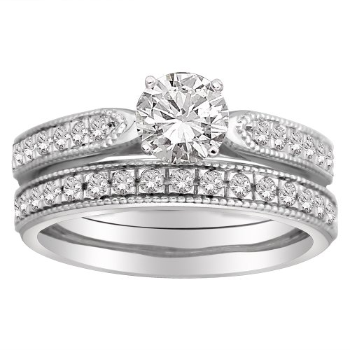 IGI Certified 14k White Gold .70 cttw Round-Cut-Cut Center Diamond Bridal Ring Set (1.25 cttw, H-I Color, I1-I2 Clarity), Size 6.5 Feature