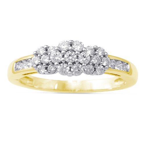 Imported The total diamond carat weight listed is approximate. Variances may be up to .05 carats. Three stone plus past, present and future round cluster diamond ring