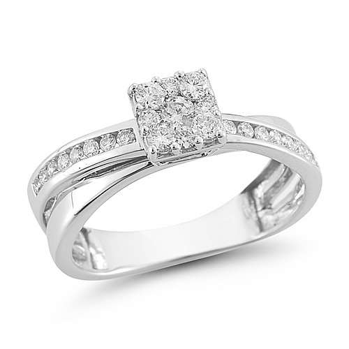 The total diamond carat weight listed is approximate. Variances may be up to .05 carats. Imported Princess cut shape round composite diamond crossover ring