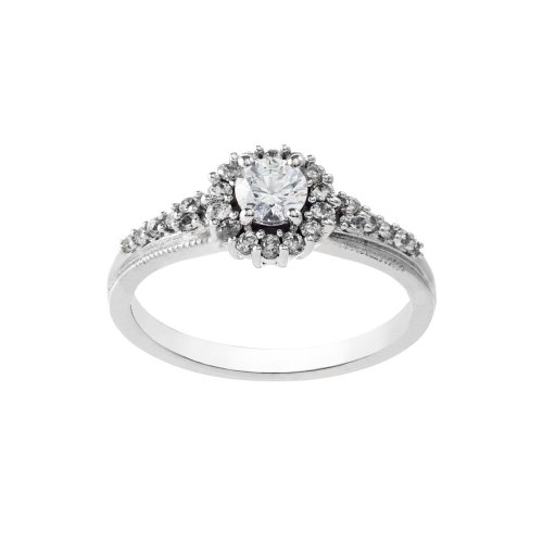 14k White Gold Halo Diamond Engagement Ring (1/2 cttw, H-I Color, I1-I2 Clarity), Size 6 Feature