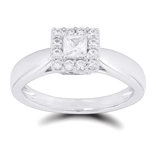 Women's 14k White Gold Princess Diamond with Halo Engagement Ring (1/2 cttw I-J Color, I1-I2 Clarity), Size 6 Feature