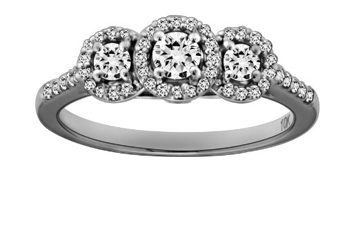 10k White Gold 1/2 cttw 3-Stone Round Diamond "Past Present Future" Ring, Size 7