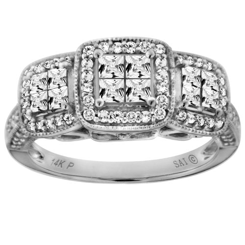 14k White Gold 1 1/4 cttw Diamond Quad Past Present Future Ring, Size 8