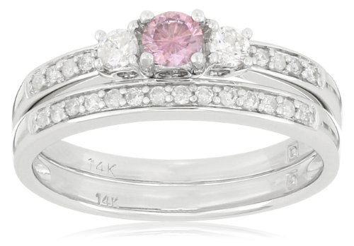 14k White Gold Pink and White Diamond Bridal Set Ring (1/2 cttw, G-H Color, I1-I2 Clarity), Size 7 Feature