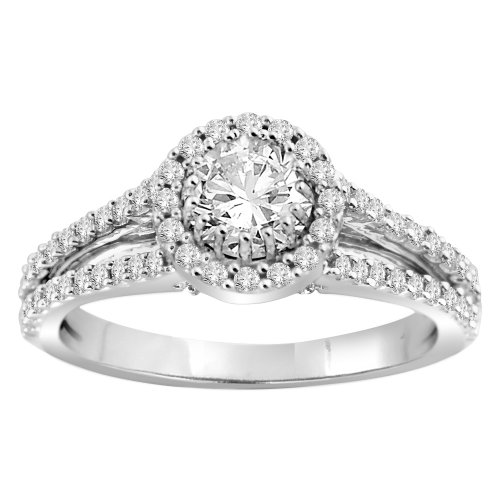 18k White Gold .50ct Round Center Diamond Halo Bridal Ring (1.00 cttw, H-I Color, SI1-SI2 Clarity), Size 6