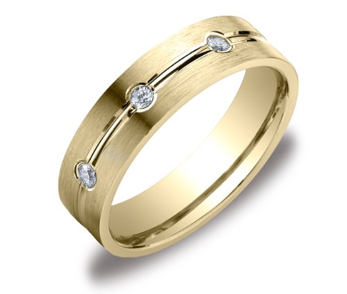 Men's 14k Yellow Gold Ideal Cut Comfort Fit 6mm Satin Finish Diamond Band (0.12, cttw, SI-1, G Color) Size 9 Feature