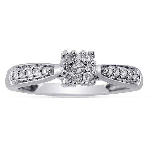 10k White Gold Square Shape Diamond Cluster Engagement Ring (1/2 cttw I-J Color, I2-I3 Clarity), Size 6 Feature