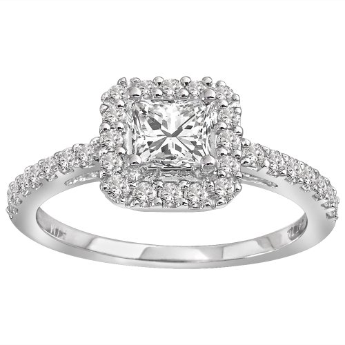 14k White Gold .50 ct Princess-Cut Center Diamond with Halo Engagement Ring (0.90 cttw, H-I Color, I1-I2 Clarity), Size 6.5 Feature