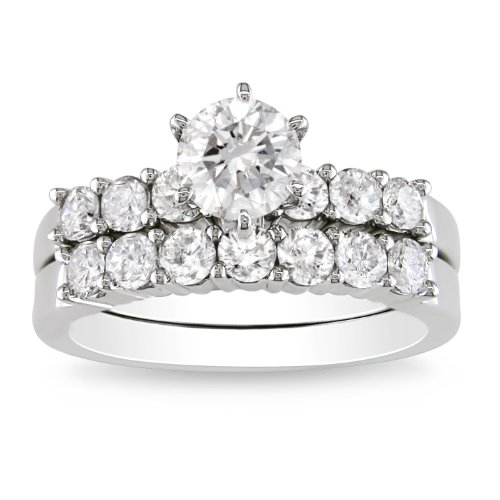 14k White Gold Diamond Bridal Set Ring (1 1/2 cttw, G-H Color, I1-I2 Clarity), Size 6
