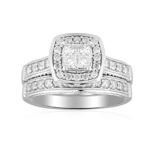 14k White Gold Princess-Cut Quad Center Diamond Bridal Ring Set (1.00 cttw I-J Color, I1-I2 Clarity), Size 8 Feature