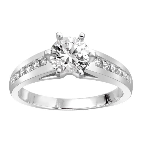 The total diamond carat weight listed is approximate. Variances may be up to .05 carats. Gorgeous 6 Prong Round Brilliant Center Diamond Imported Channel Setting Side Stones in Band .70 ct Round Brilliant IGI Certified "I1" Center Diamond